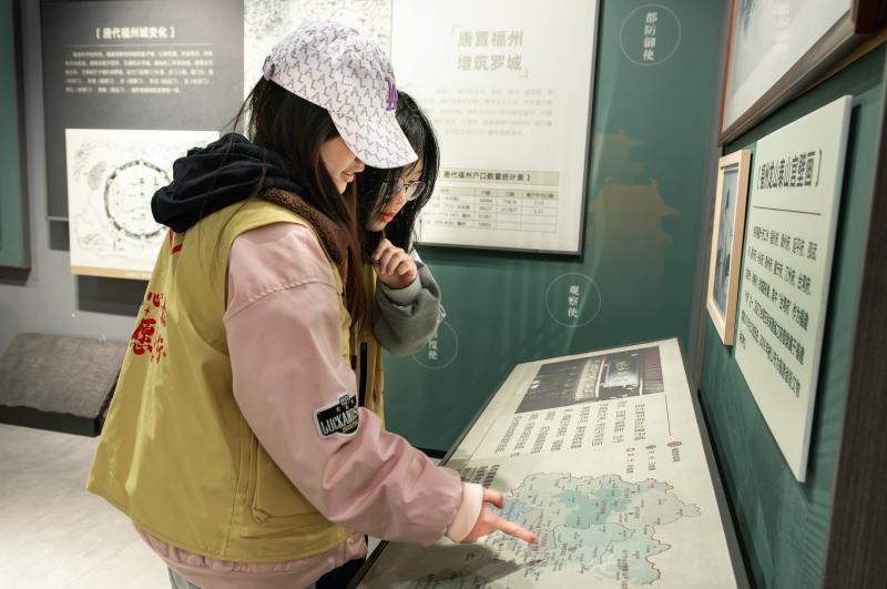 走进多媒体展示区,动态演示屏以光影技术还原了冶山从闽越王城到明清都城的地貌变迁。从唐代罗城的增筑扩张,到海上丝绸之路的商贸繁盛,光影流转间,厚重的历史画卷徐徐展开。 队员们围站观看,不时发出赞叹,直观感受到闽越文明的辉煌传承与福州城市格局的历史演变,深切体会到福州这座城市深厚的历史底蕴。