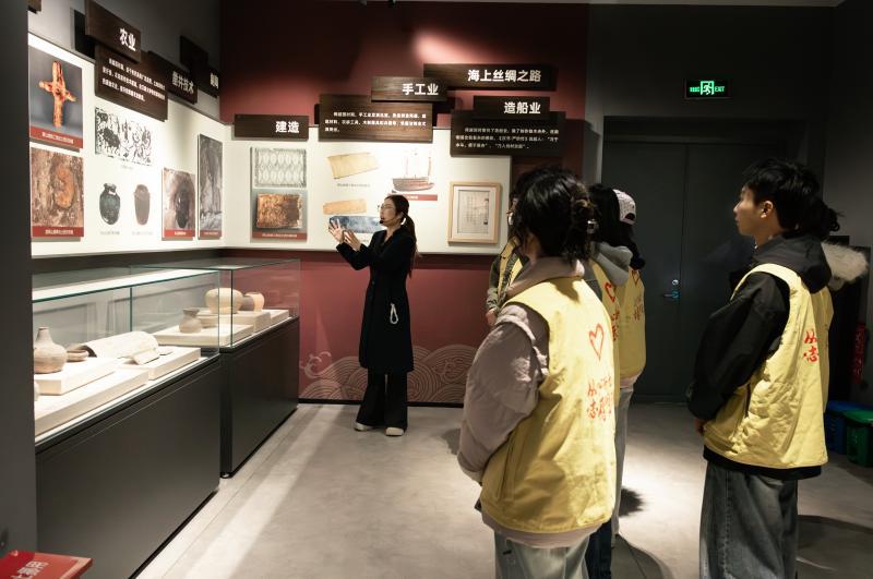 为传承闽都历史文脉,感悟红色文化精神,2026年1月27日,福州大学至诚学院传媒与设计系“新脉相传”实践队走进福州市冶山春秋园博物馆与萨镇冰纪念馆,开启寒假社会实践活动。实践队将关注点聚焦于闽都历史探寻与红色精神传承两大领域,通过实地探访与学习感悟的方式,深化对闽都文化底蕴与先辈爱国情怀的认知,为后续非遗传承实践筑牢精神根基。 探访冶山春秋园,追溯千年闽都根脉实践队首站来到冶山春秋园博物馆。这座承载着福州2200余年建城史的文化地标,成为实践队成员们触摸闽越文明的重要窗口。队员们紧跟讲解员脚步,有序参观馆内“闽越溯源”“唐宋风华”“明清盛景”等主题展区。