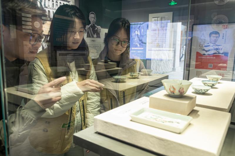 随后,队员们移步园内的萨镇冰故居,墙上悬挂的黑白照片记录着萨镇冰的戎马生涯,展柜里泛黄的书信手稿、磨损的海军帽徽,瞬间将队员们带入这位近代海军将领的人生岁月。成员们认真端详泛黄的老照片与手稿,追寻这位近代海军将领的报国足迹。