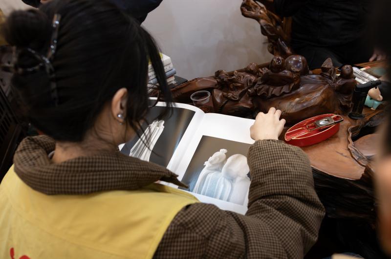 图18 实践队成员翻阅寿山石作品集