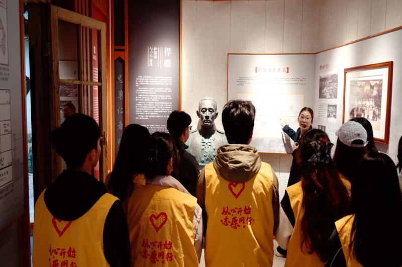 图12 讲解员为实践队成员介绍萨镇冰的生平事迹